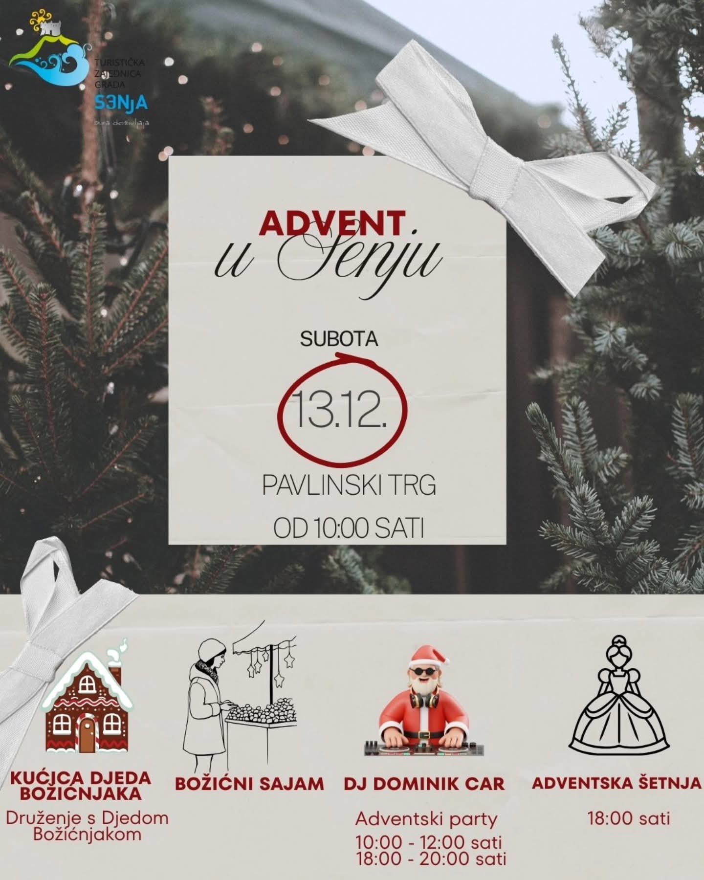 Za dobru atmosferu tijekom prijepodneva pobrinut će se DJ Dominik Car, koji će od 10 do 12 sati glazbom dodatno zagrijati adventsku priču u gradu pod Nehajem. Program se nastavlja i u večernjim satima, kada u 18 sati ispred History House Moja Ti započinje adventska šetnja Senjom, zamišljena kao opuštena blagdanska večernja šetnja gradom.