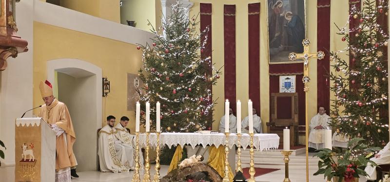 U homiliji biskup Medo govorio je o Božiću kao svjetlu koje ulazi u ljudsku tamu strahova, neizvjesnosti i umora. Osvrnuo se na sliku magle koja zamagljuje pogled i otežava razaznavanje puta, istaknuvši kako Bog upravo u takve trenutke ulazi u život čovjeka. Naglasio je da je dovoljan i najmanji bljesak svjetla da se magla razmakne i da se put ponovno nazre.