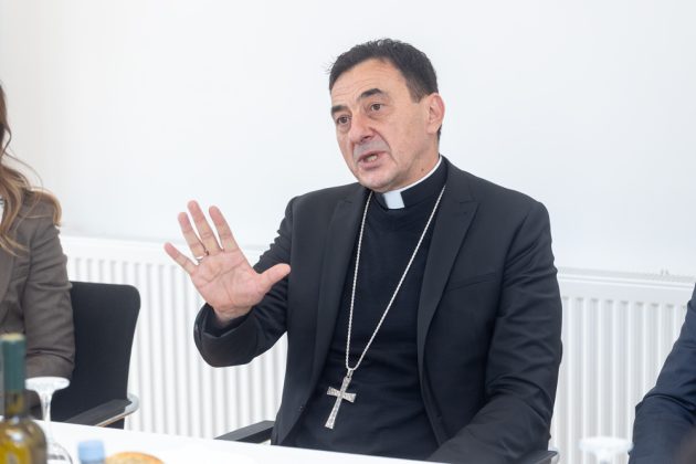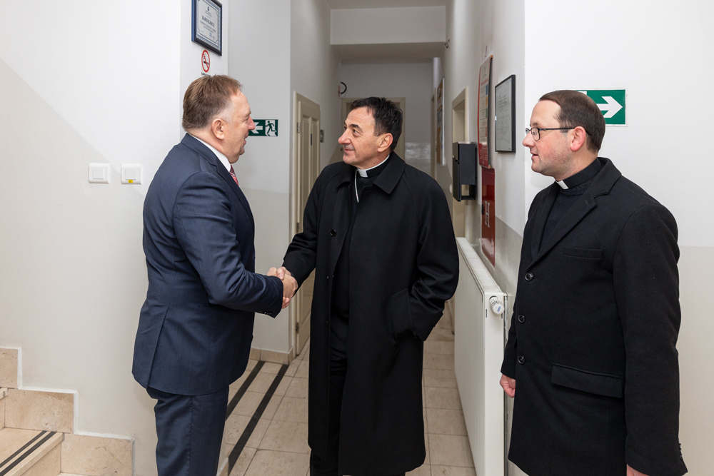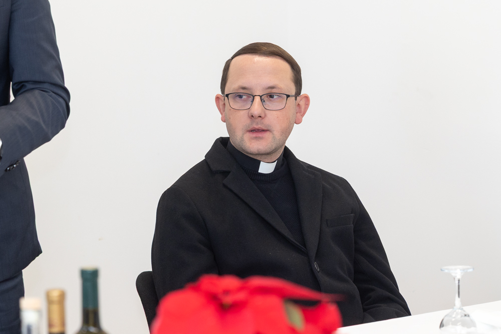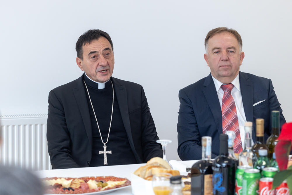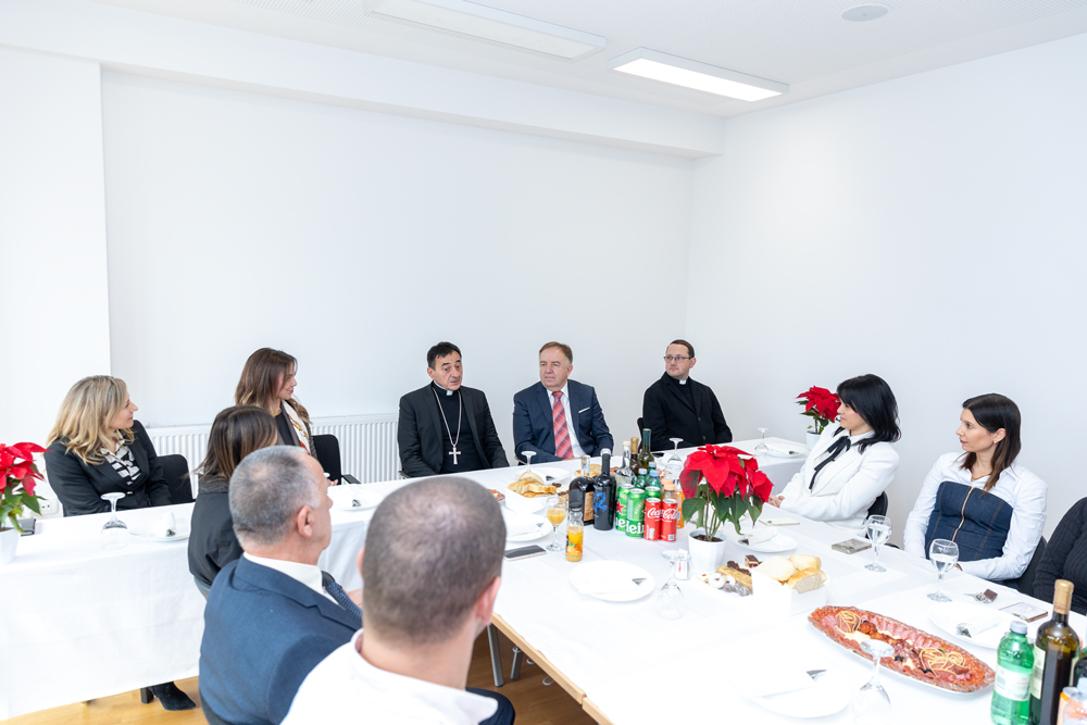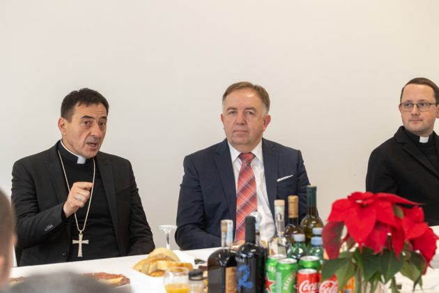 Biskup Medo uputio je prisutnima srdačne božićne čestitke, zaželjevši svima blagoslovljen i miran Božić. U svom obraćanju posebno je naglasio važnost nastavničkog poziva, istaknuvši ga kao jedno od najodgovornijih i najplemenitijih zvanja. Naglasio je kako učitelji i nastavnici imaju ključnu ulogu u odgoju mladih ljudi, ne samo u prenošenju znanja, već i u oblikovanju vrijednosti, karaktera i ljudskosti budućih naraštaja.