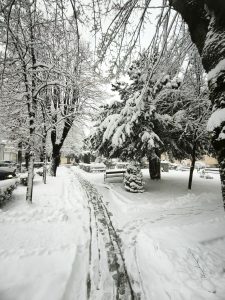“Snijeg i stvaranje novog snježnog pokrivača. Mogući zapusi. Visina novog snijega > 20 cm; Srednja brzina vjetra > 40 km/h. BUDITE SPREMNI na rasprostranjenu pojavu snijega i/ili leda koja će dovesti do prekida cestovnog, željezničkog i zračnog prometa i transporta te prouzročiti poremećaj kod aktivnosti na otvorenom.”