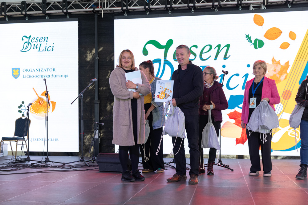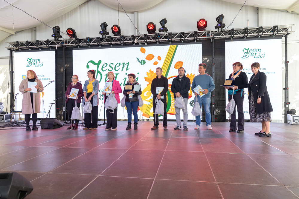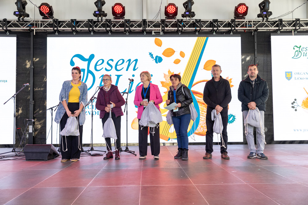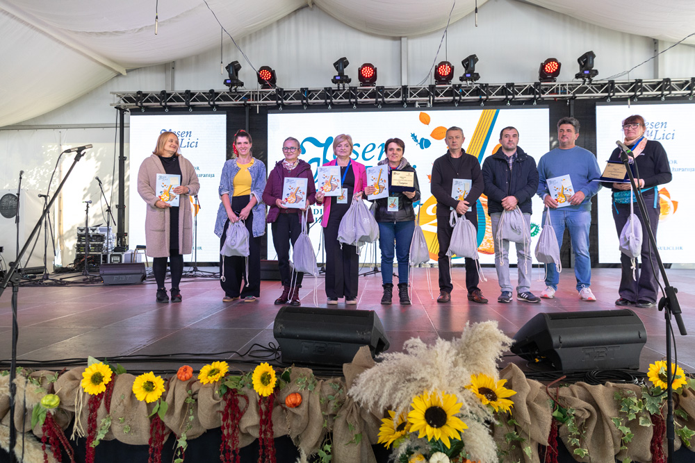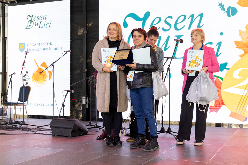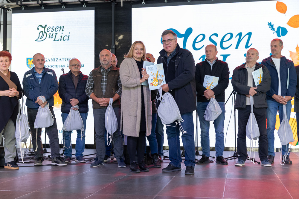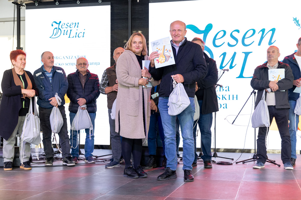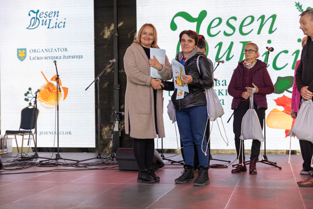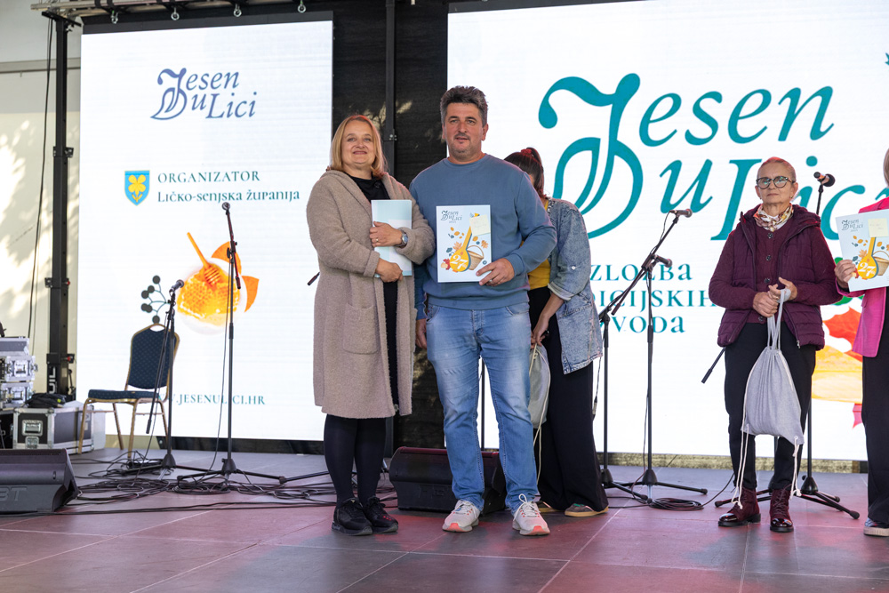 U sklopu manifestacije Jesen u Lici dodijeljene su nagrade najboljim proizvođačima meda, sira, rakija, džemova i voćnih namaza, zimnice te sokova i sirupa. Stručna povjerenstva ocjenjivala su proizvode prema kvaliteti i dodjeljivala zlatna, srebrna i brončana odličja, a program je vodila lička glumica Tonka Mršić. Nagrade je uručila županijska pročelnica Ana Rukavina Stilinović.