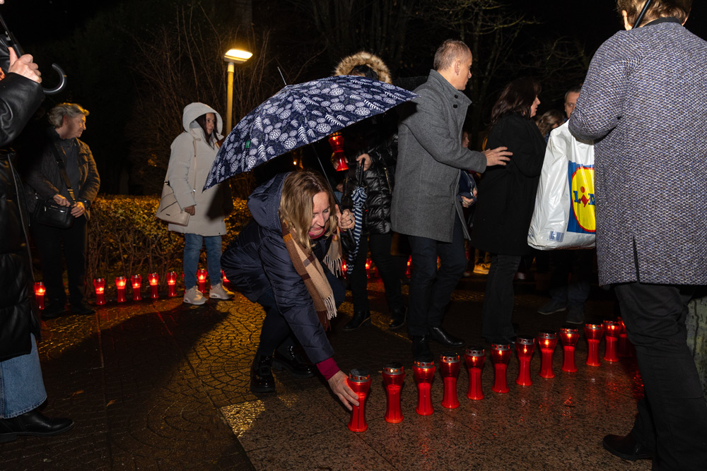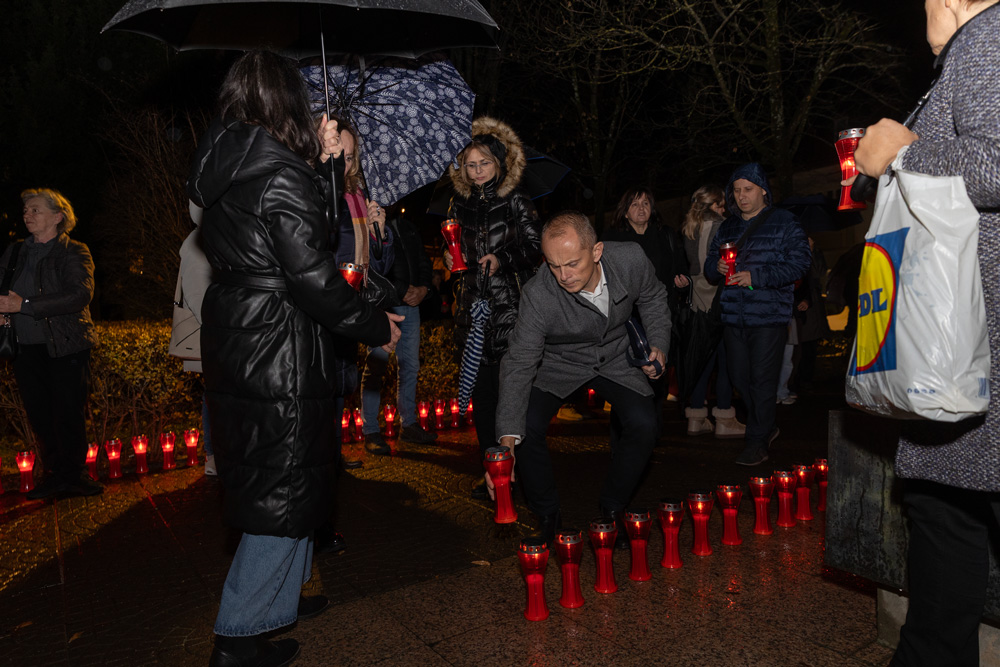 Obilježavanje je započelo paljenjem svijeća duž Vukovarske ulice u Gospiću. Unatoč kišnoj večeri, brojni su Gospćani došli odati počast svim poginulima, nestalima i stradalima, a crveni lampioni formirali su dojmljivu aleju sjećanja.