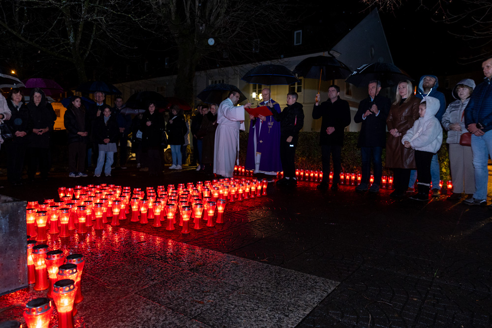 Po završetku mise sudionici su se procesijom uputili do Spomenika poginulim hrvatskim braniteljima i civilnim žrtvama Domovinskog rata na Trgu Alojzija Stepinca. Tamo su zapalili svijeće i zajednički izmolili molitvu u znak trajnog pijeteta prema žrtvama.
