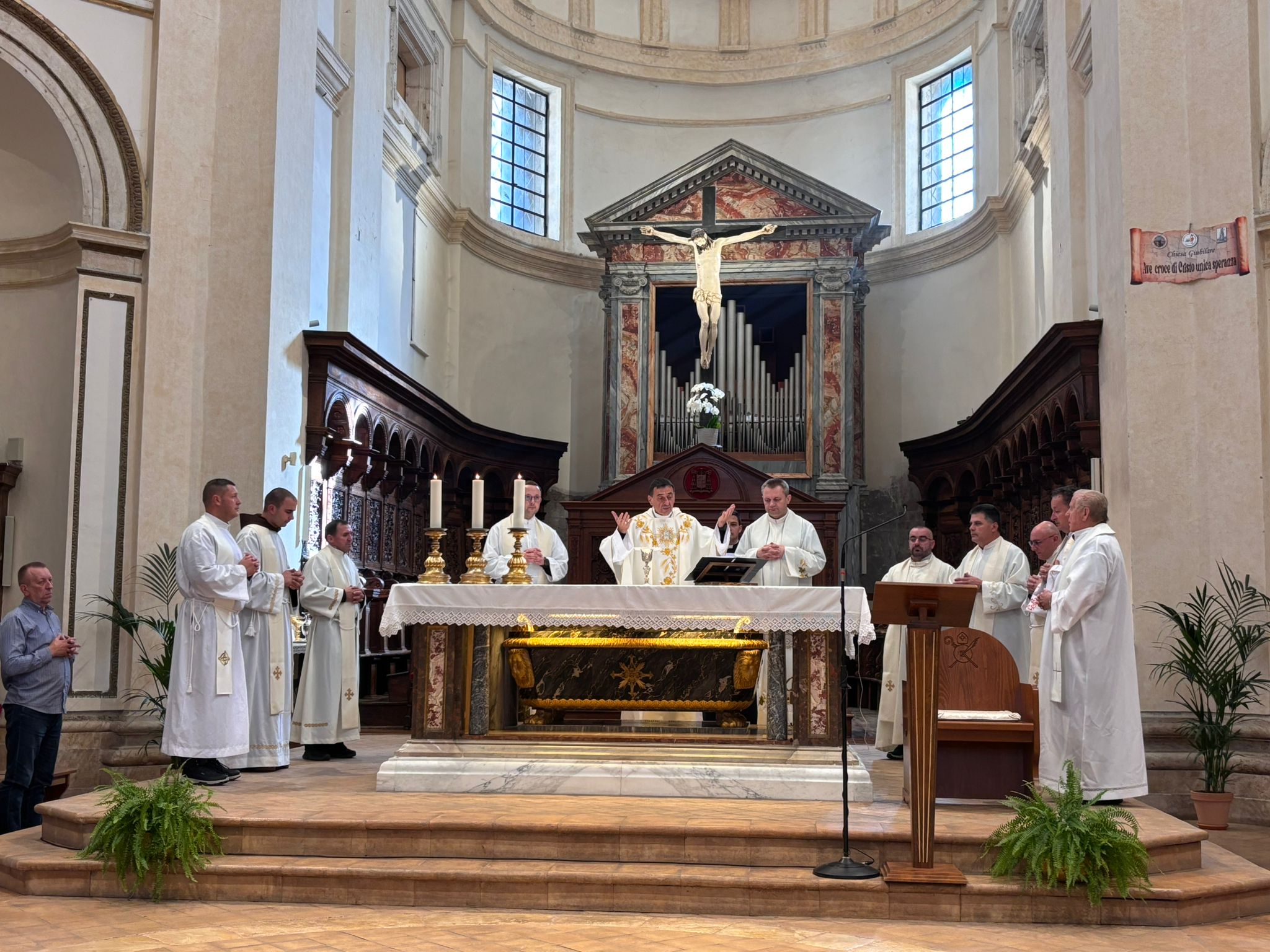 Središnji dio programa u Asizu bilo je misno slavlje u katedrali sv. Rufina u 11 sati, koje je predvodio gospićko-senjski biskup mons. Marko Medo, uz koncelebraciju svećenika iz biskupije. Liturgijsko pjevanje animirao je udruženi zbor Gospićko-senjske biskupije.