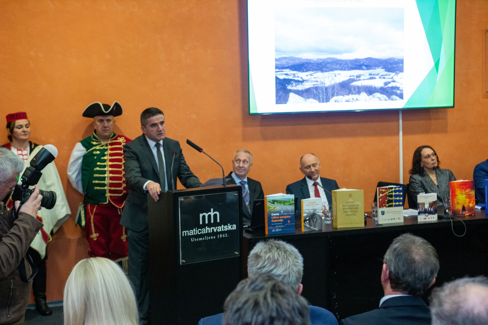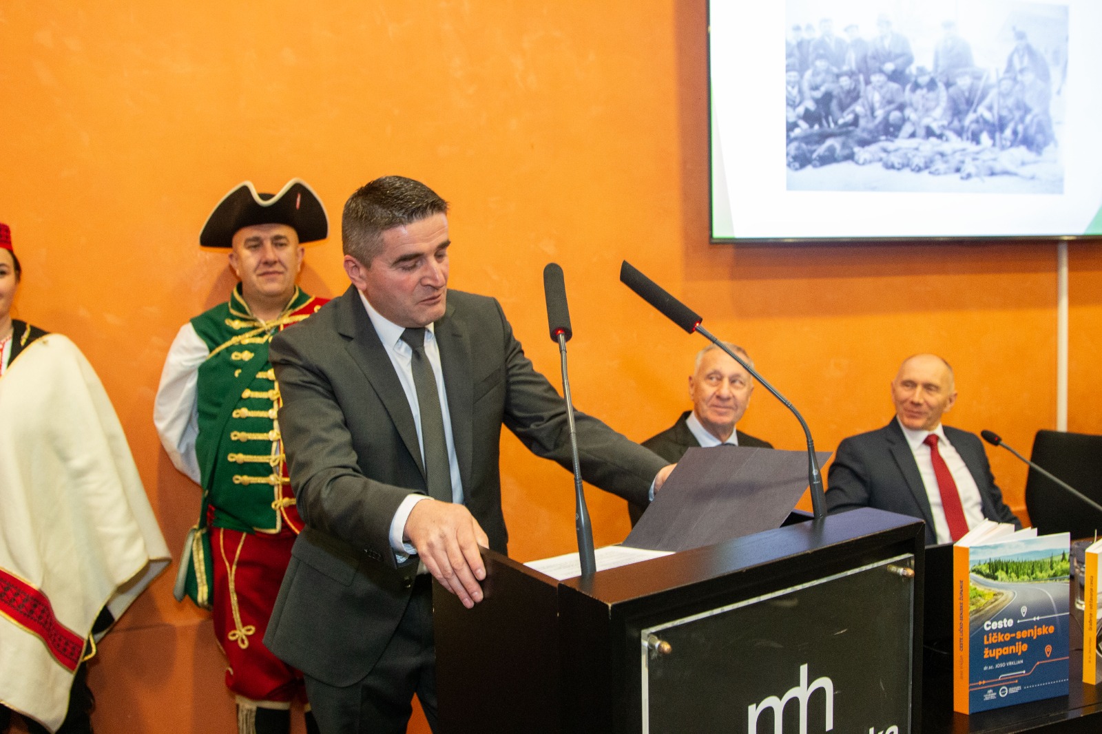 Poseban vizualni i simbolički doprinos večeri dala je i svečana nazočnost počasne povijesne postrojbe Lička pukovnija Gospić, čiji su pripadnici u povijesnim odorama dodatno naglasili povezanost autorovih knjiga s konkretnom povijesnom tradicijom i kontinuitetom ličke vojne baštine.