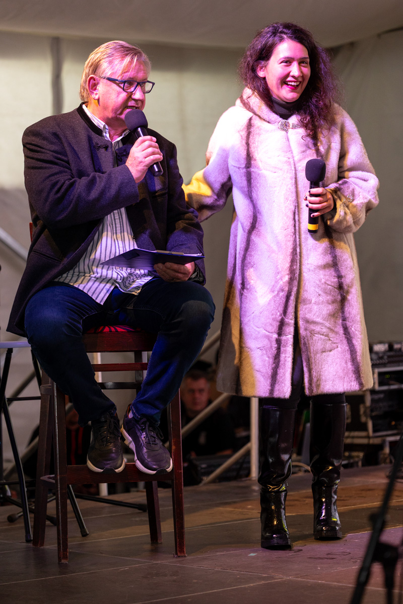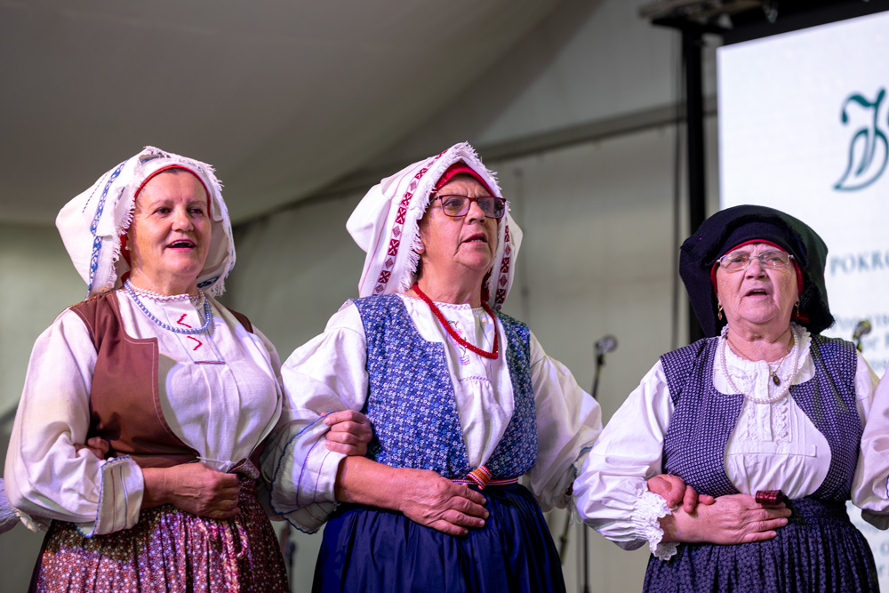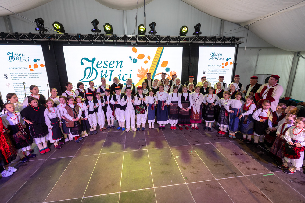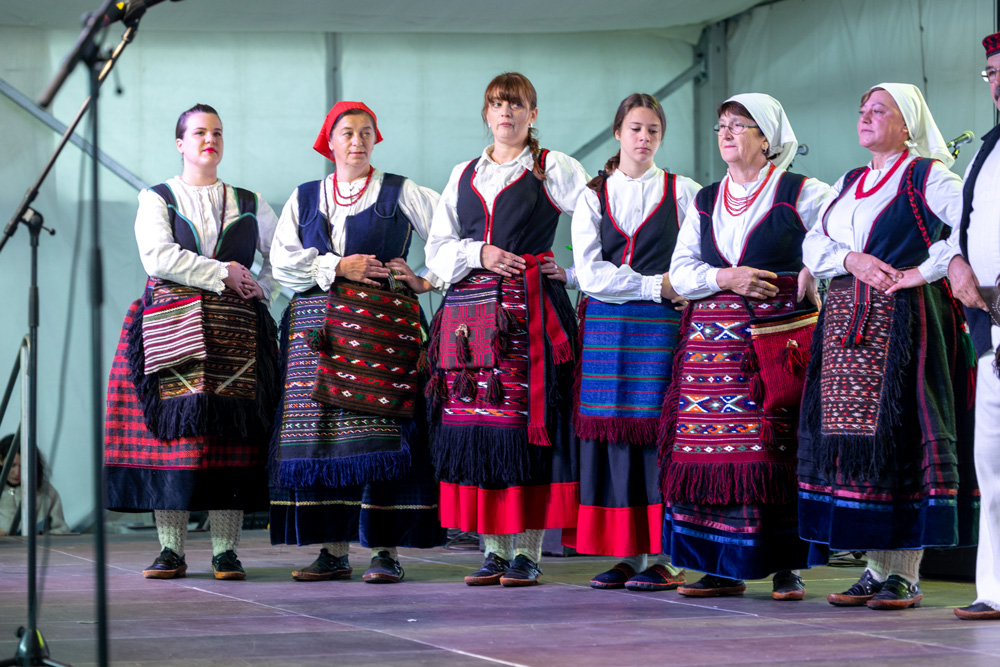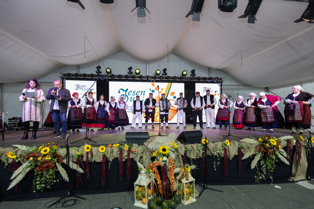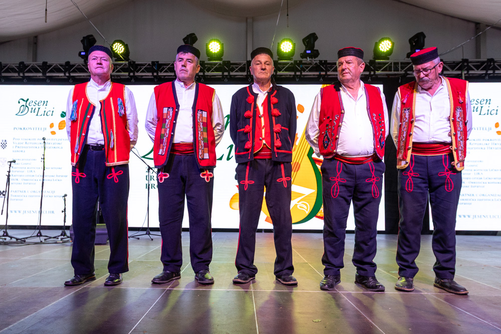 Program se nastavio pod velikim šatorom na trgu Stjepana Radića, gdje su nastupila brojna kulturno-umjetnička društva. Posjetitelji su mogli uživati u pjesmi, plesu i tradicionalnim nošnjama izvođača iz Like i drugih dijelova Hrvatske, među kojima su HKUD „Lika“ Lički Osik, KUD „Graničar“ Cvitović, HKUD „Široka Kula“, KUD „Sv. Nikola Tavelić“ Lišane Ostrovičke, KUD „Sv. Mihovil“ Nikšić, HKUD „Vrilo“ Lovinac i KUD „Bukovačko Smilje“ Bjelina Benkovac.