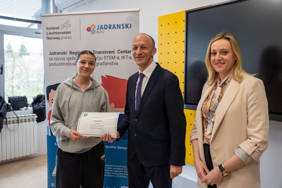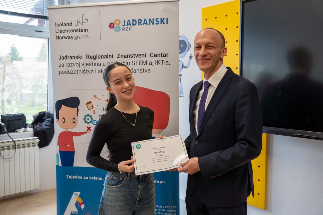Shodno navedenom, danas je u učionici uređenoj u sklopu Jadranskog RZC STEM projekta u prostoru Kulturno Informativnog Centra u Gospiću upriličena dodjela vaučera polaznicima navedenog programa, okvirne vrijednosti 20 tisuća eura kojima se učenicima omogućuje besplatan upis u edukacijski program Regionalnog znanstvenog centra-Podružnica Lika.