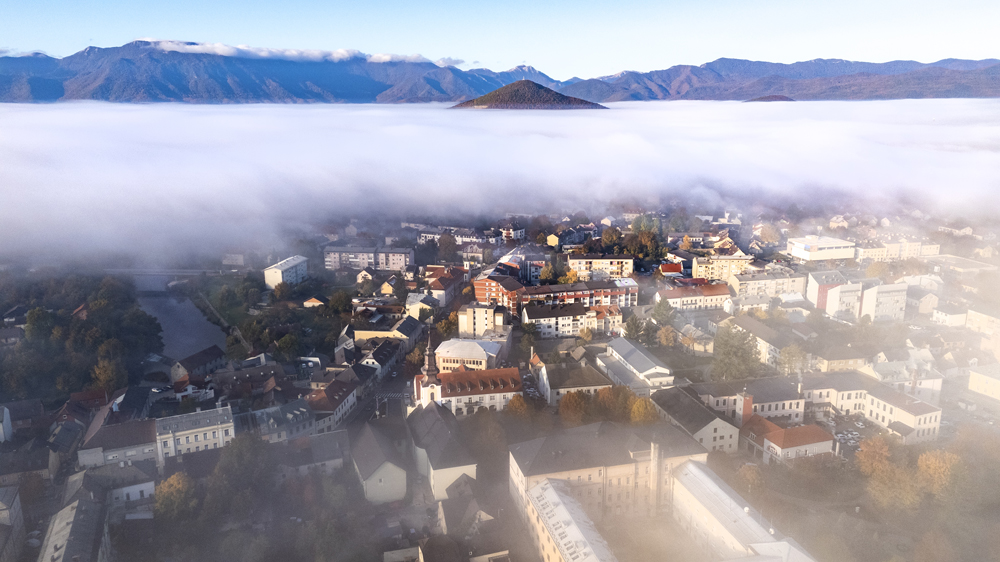 Gospić je jutros doživio prizor kakav se u jesenja jutra često viđa. Gusta magla prekrila je dolinu poput bijelog mora i utišala ulice, kuće i krovove grada. Samo su vrhovi Ošte, nedaleko grada, i daleki Velebit probijali taj miran zastor, stojeći poput nijemih stražara iznad tišine.