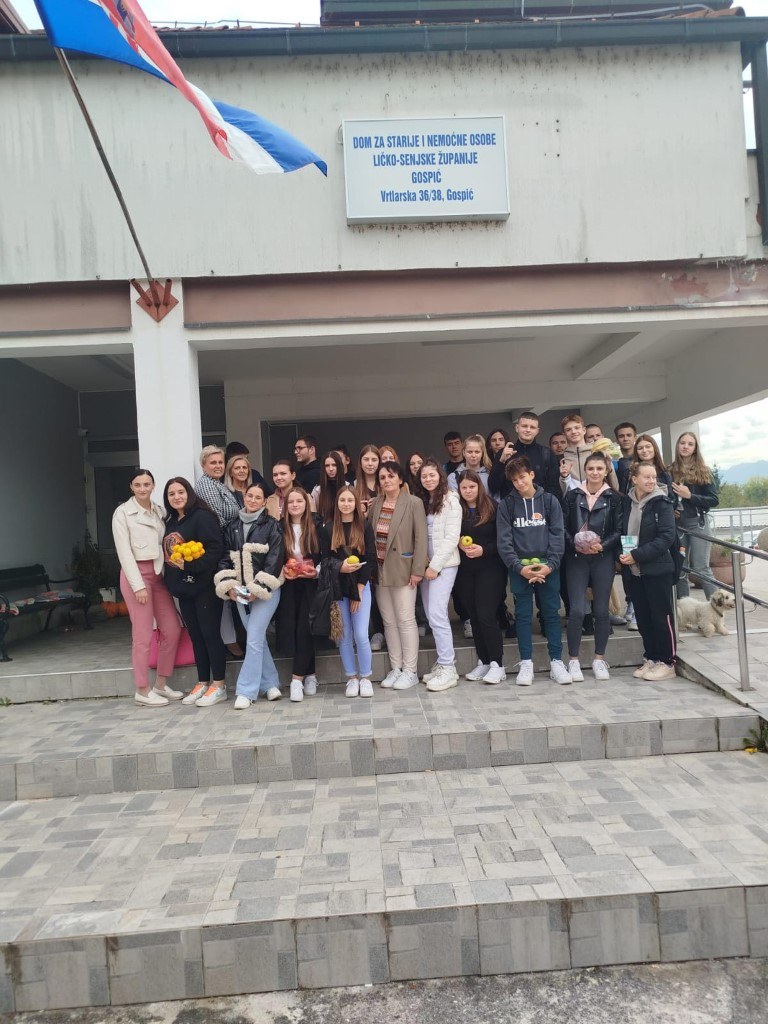 Učenici i nastavnici Strukovne škole u Gospiću, Smjer medicinska sestra/ tehničar opće njege, razredi 1m, 3m i 5m posjetili su korisnike Doma za starije osobe Ličko – senjske županije u Gospiću, sa prigodnim darovima, u namjeri da korisnicima čestitaju i uljepšaju njihov dan. Takva vrsta posjeta je već postala tradicija, budući da svake godine učenici medicinske škole posjete korisnike Doma.