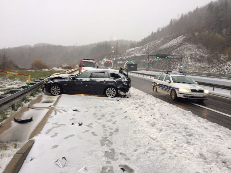 Vozilo BMW zbog neprilagođene brzine i uvijeta na autocesti ostalo je prepriječeno, nakon čega se u njega zabilo kombi vozilo Pravosudne policije.