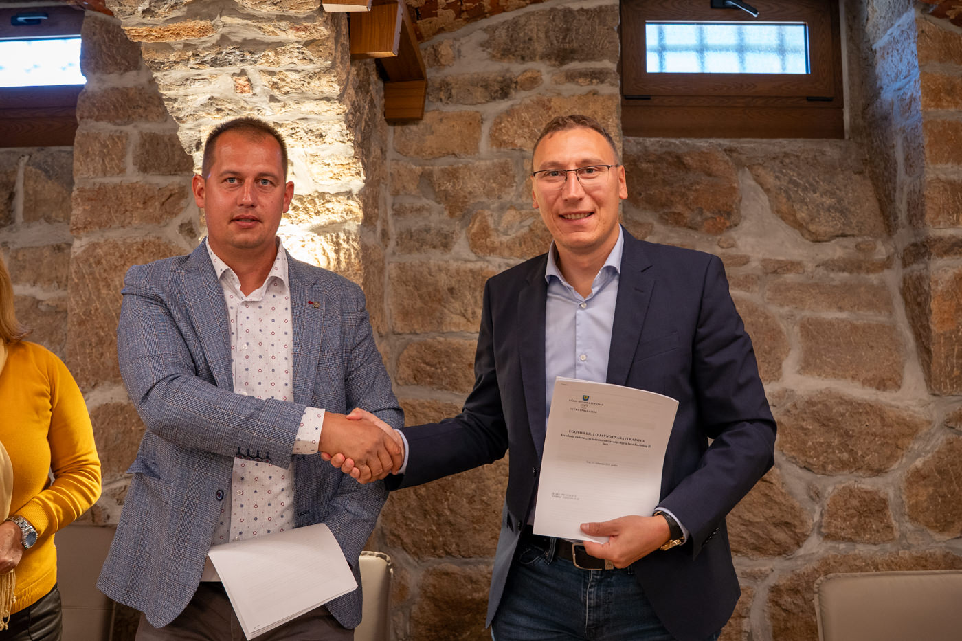 Ugovore su potpisali ravnatelj Lučke uprave Senj Ante Stipić i vlasnik obrta ALPHA SUB iz Rijeke Slaven Medved, čiji će obrt biti izvođač radova. Potpisivanju su nazočili i načelnik Općine Karlobag Boris Smojver, pročelnica Upravnog odjela za gospodarstvo, pomorsko dobro i promet Ana Rukavina-Stilinović te viša stručna suradnica za promet i pomorsko dobro Maja Oštarjaš.