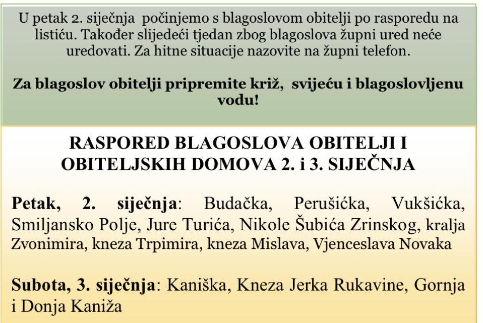 Home Gospić Obavijest o REDOVITOM blagoslovu obitelji – kuća u Župi Gospić GospićKulturavijesti Obavijest o REDOVITOM blagoslovu obitelji – kuća u Župi Gospić By Nikola Mraović - 2 siječnja, 2026 0 Facebook Screenshot Gs Press RELATED ARTICLESMORE FROM AUTHOR U Gospiću svečano zatvorena Jubilejska godina Nova godina dočekana u znaku molitve, nade i novog života Baške Oštarije u podne zakoračile u 2026. uz pjesmu i dobro raspoloženje Uručeni čekovi za nabavu sportske opreme sportskim udrugama i savezima s područja Ličko-senjske županije Građanin u Senju odlučio provesti blagdane bez straha i dragovoljno predao pušku i streljivo