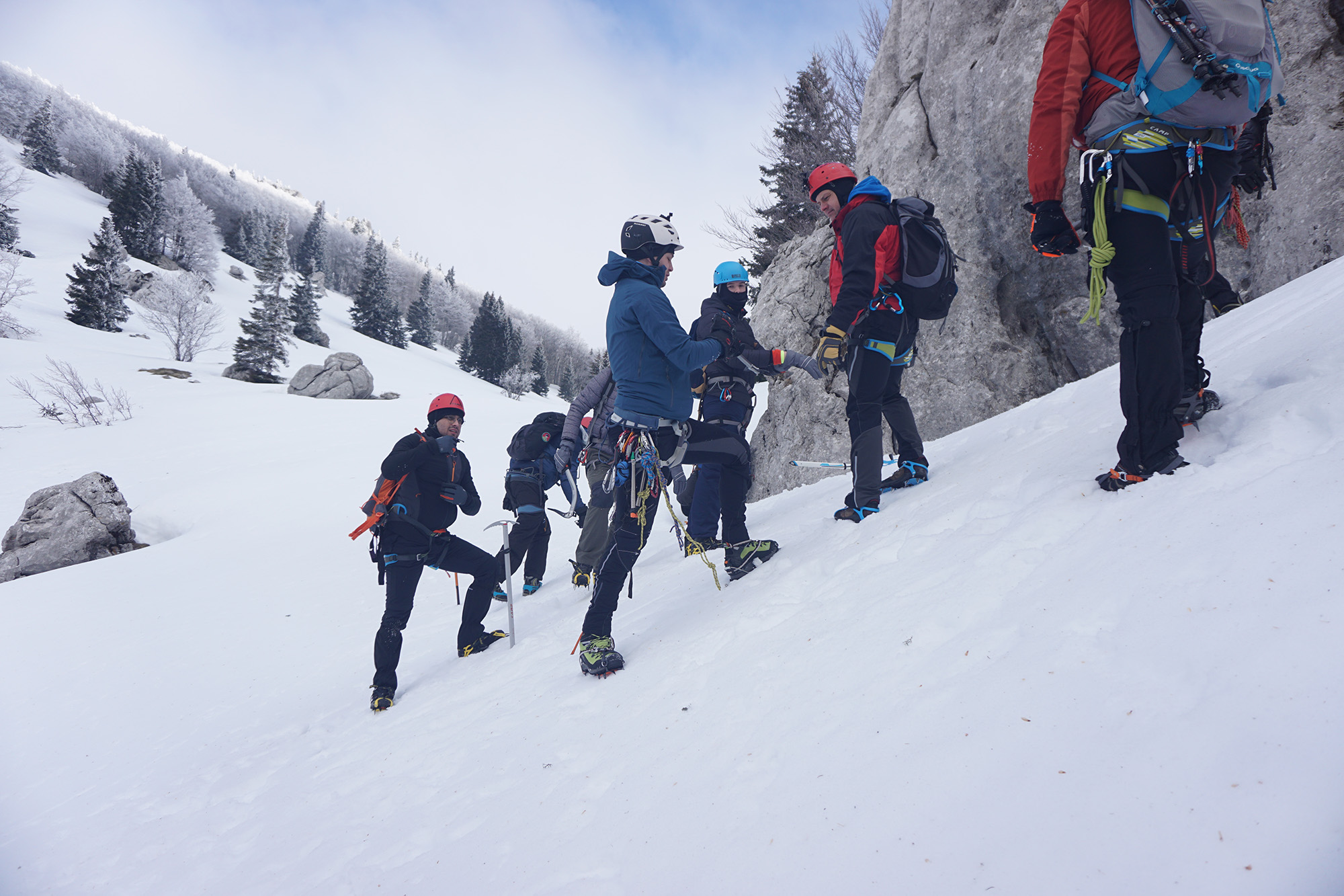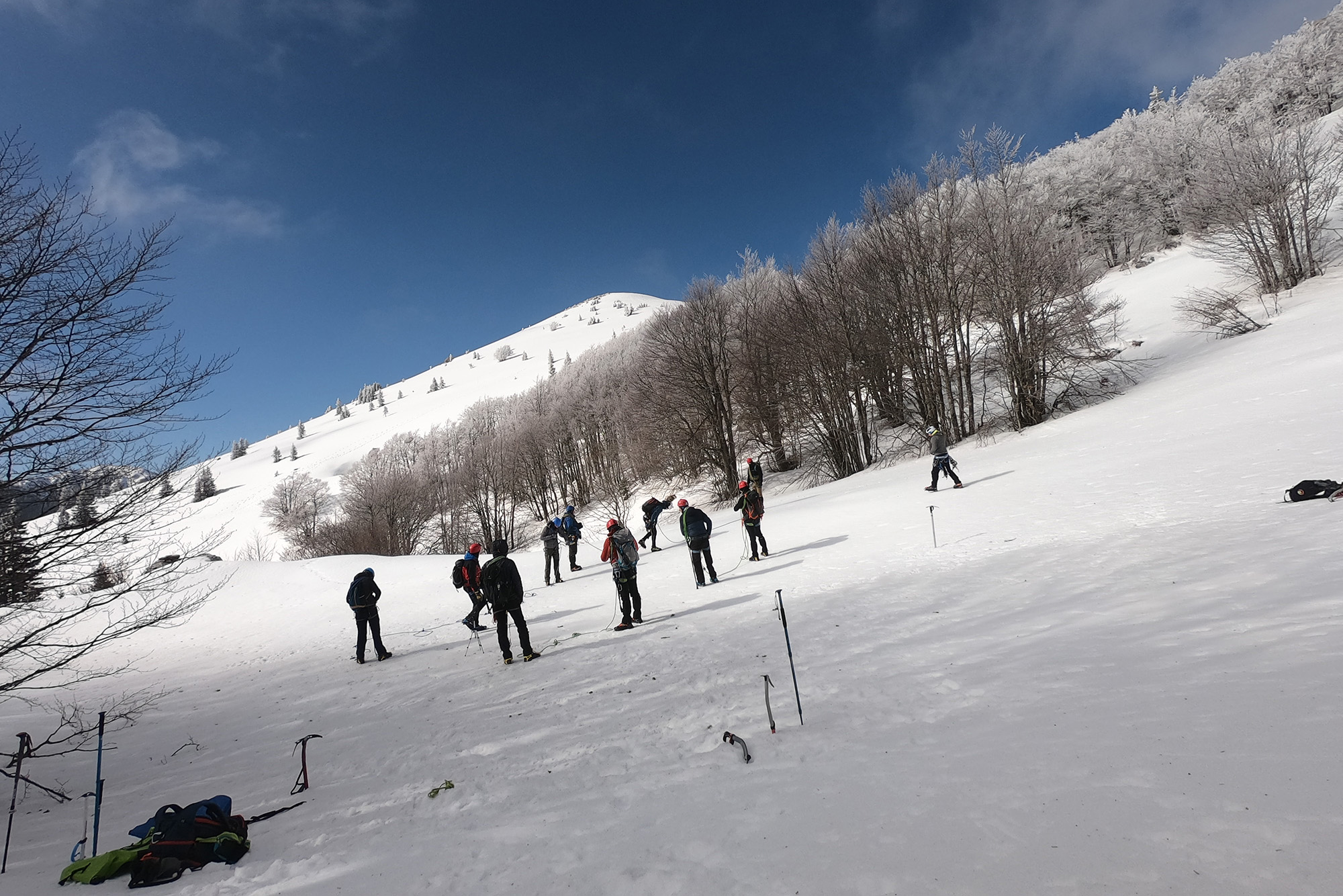 Sunčan dan i hladni vremenski uvijeti pogodovali su pravom uživanju u edukaciji, a zvukovi udara cepina u tvrdi snijeg i škripanje dereza na snijegu pri temperaturi od -5°c miješali su se sa zvižducima vjetra Velebitske bure. Upravo takvi uvijeti slični su uvijetima u visokom gorju te su predstavljali ovu edukaciju vjernu stvarnim surovim uvijetima.
