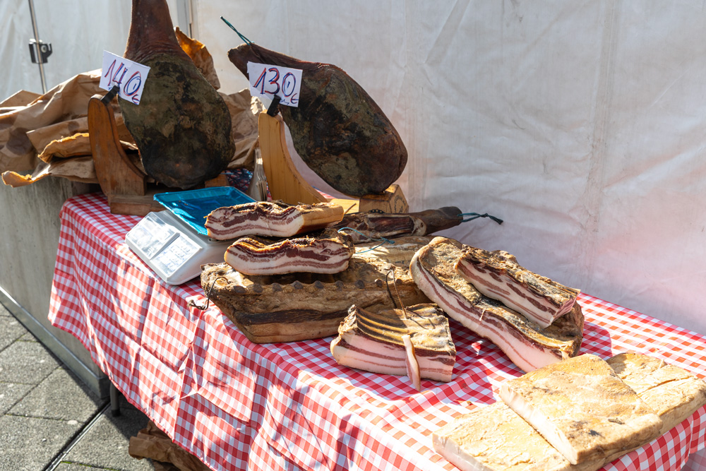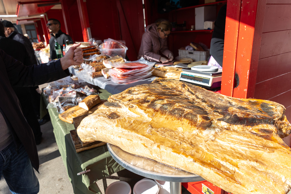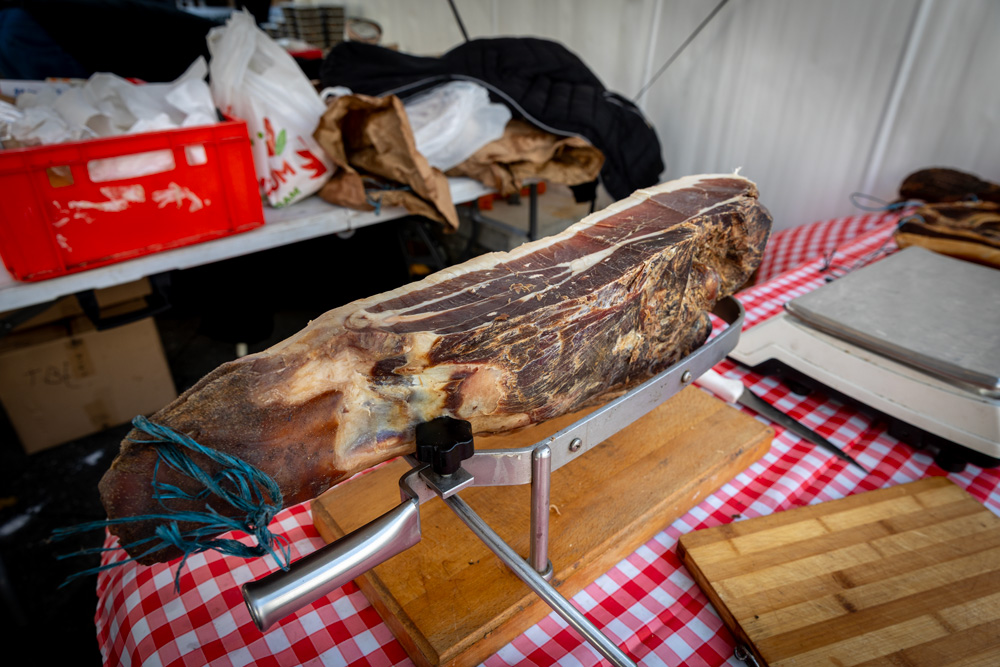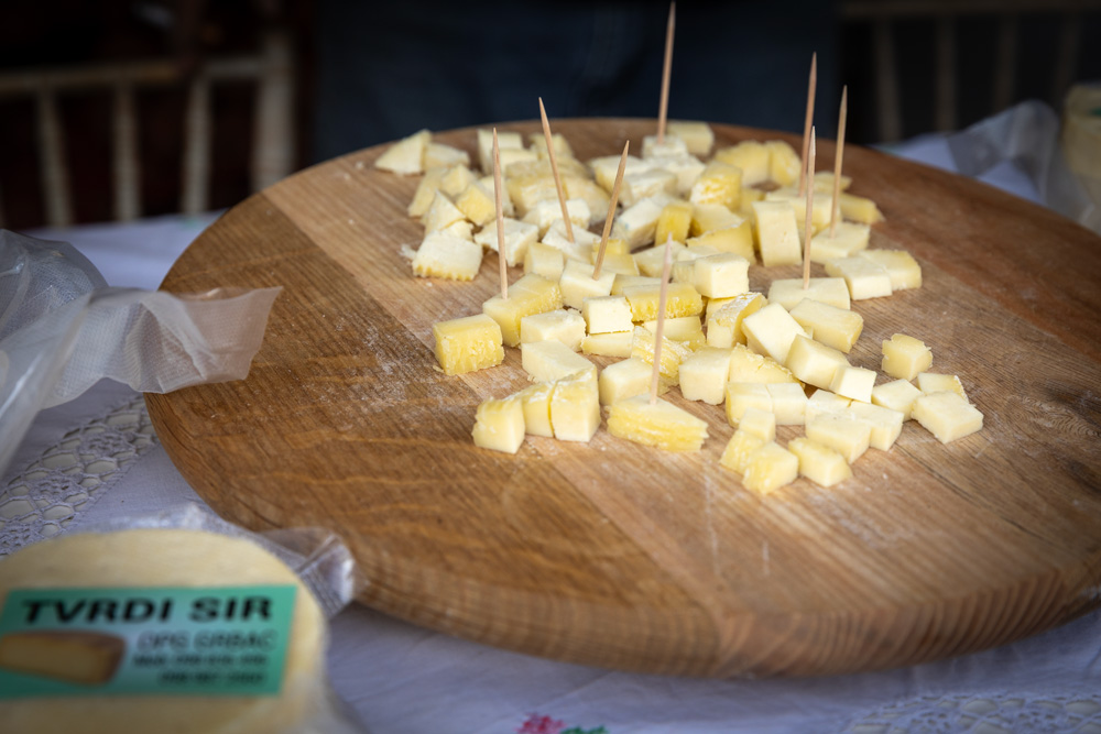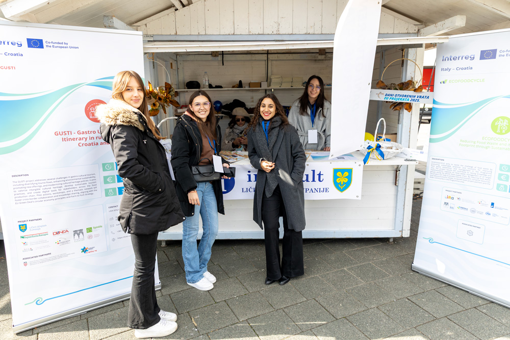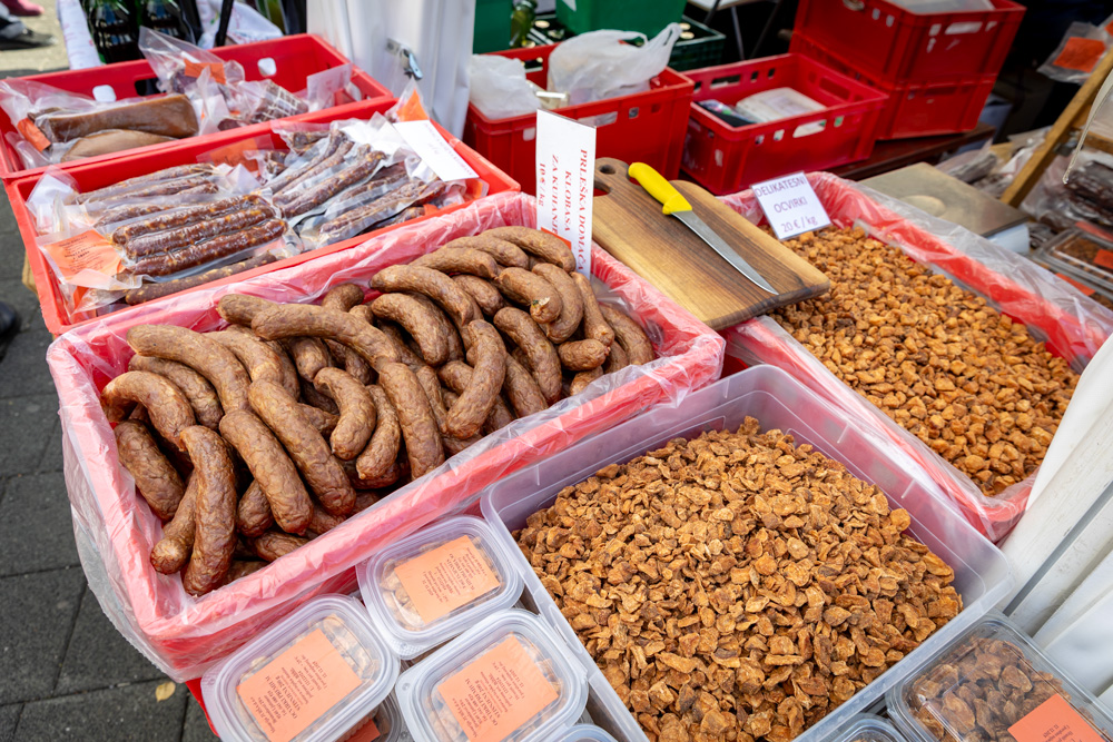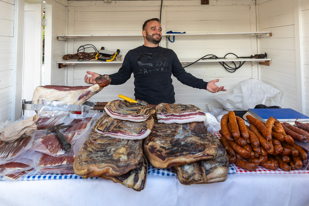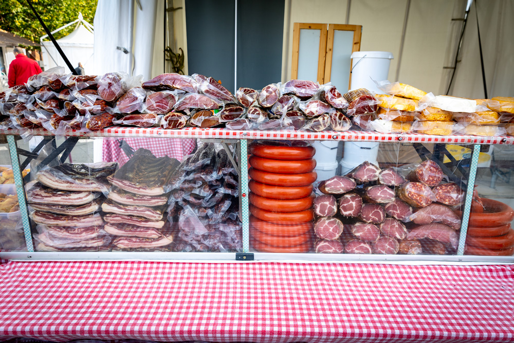 Miris domaćih delicija širio se trgom već na prvim koracima: suhomesnati proizvodi poput špeka, kobasica i pršuta privlačili su gurmane, dok su se na drvenim daskama nudili zalogaji domaće kobasice „za probu“. Samo nekoliko koraka dalje, staklene boce likera, rakija i gina blistale su na prohladnom ličkom suncu, a posjetitelji su rado zastajali kako bi kušali poneki gutljaj, a nešto i ponijeli kući.