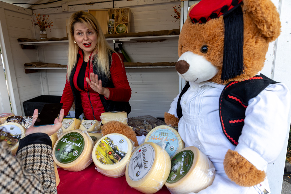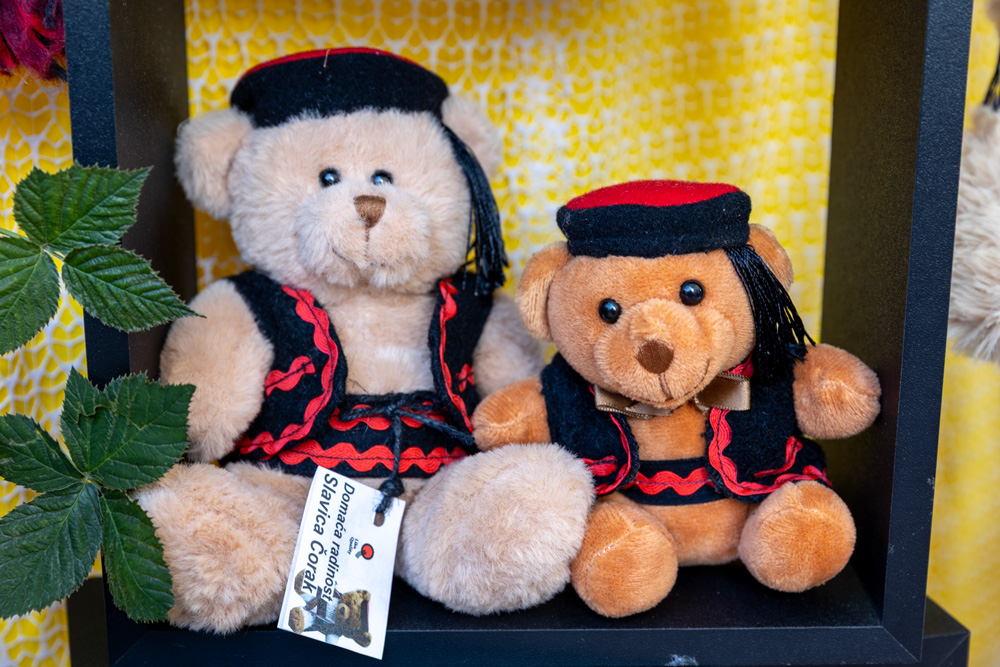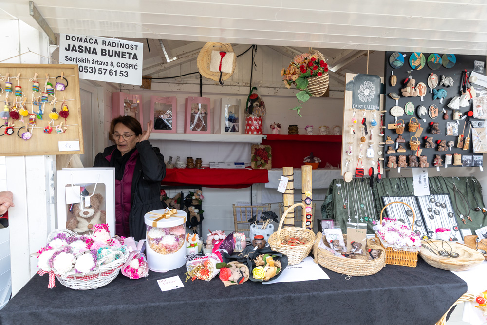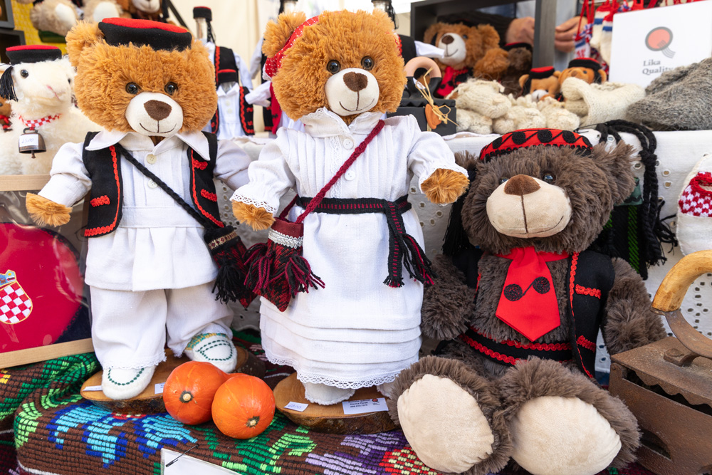 Posebno su se isticali plišani medvjedići i ovčice u ličkoj nošnji, koje su plijenile pažnju najmlađih, ali i onih starijih koji u njima vide originalan suvenir. Drveni magarčići s teretom na leđima podsjetili su na težački život nekadašnje Like, dok je vesela maskota medvjeda Plitvičkih jezera strpljivo pozirala s posjetiteljima, šireći osmijehe i privlačeći fotografije za uspomenu.