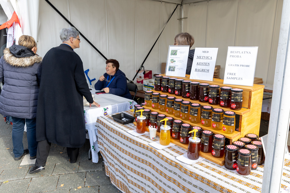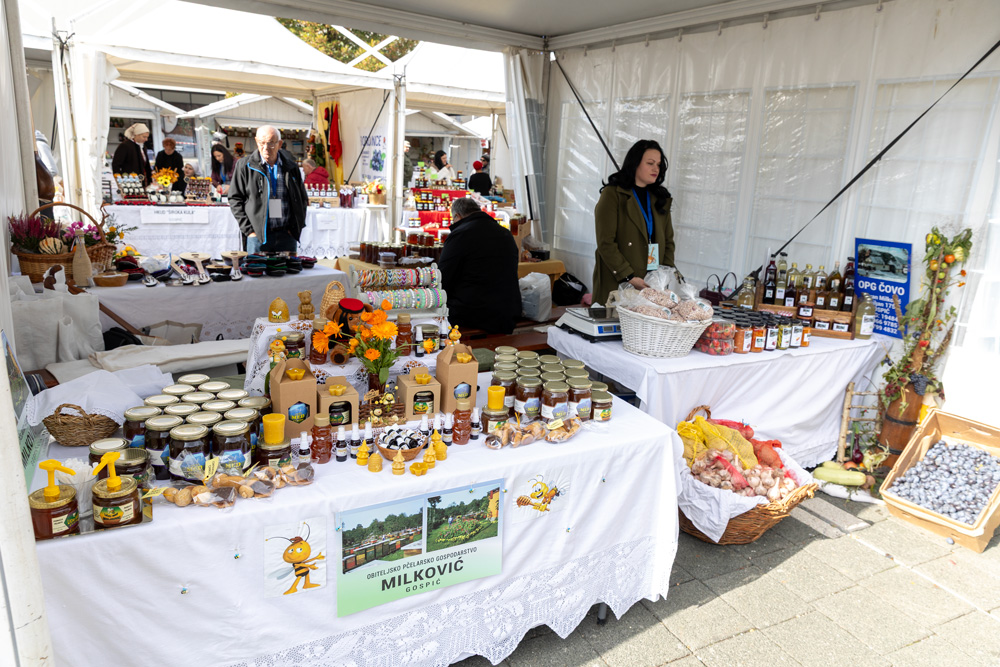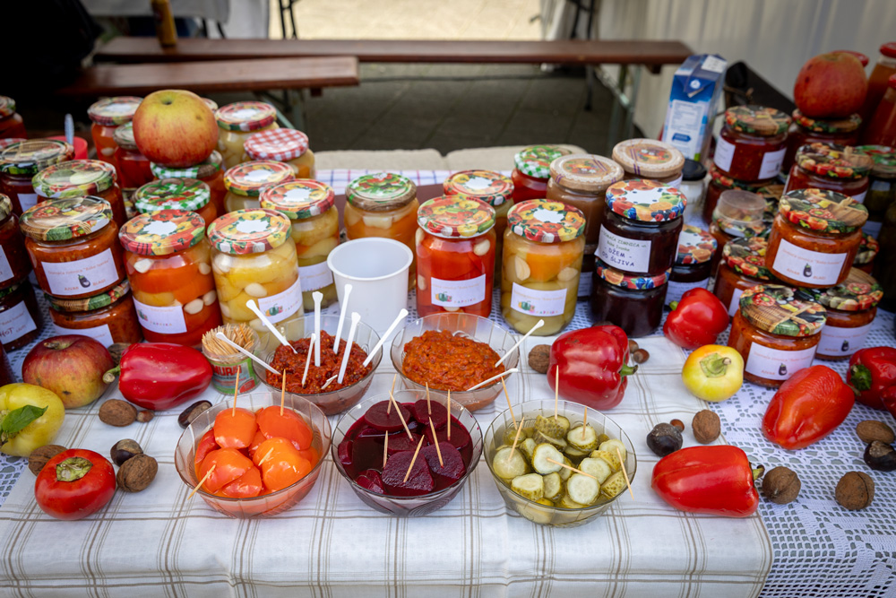 Na sajmu se moglo pronaći i zimnice svih boja i okusa – od teglica pekmeza i džemova do ukiseljenog povrća i sokova. Miris češnjaka, svježih gljiva i kestena širio se u zraku, podsjećajući da je jesen stigla u punom sjaju. Domaći kolači i sitni slatki zalogaji privlačili su one sa slabosti prema slatkome, dok su kesteni i suhe smokve vraćali okus djetinjstva.