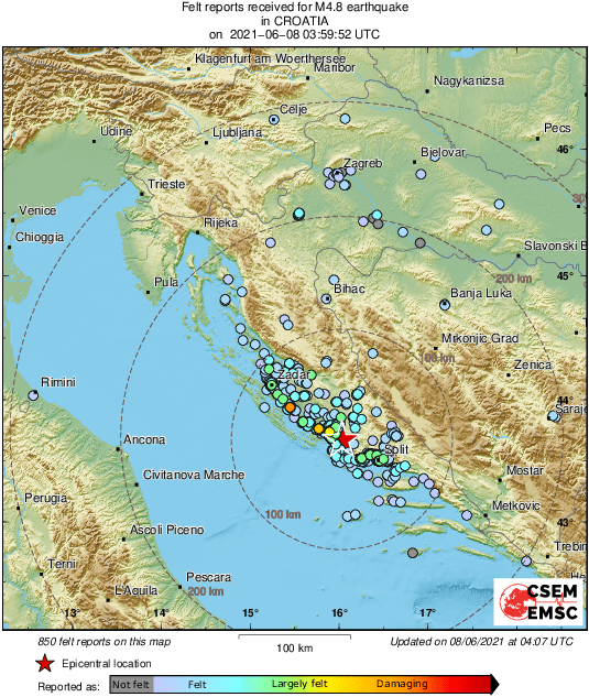 Snažan potres točno u 6 sati osjetio se na području Dalmacije.