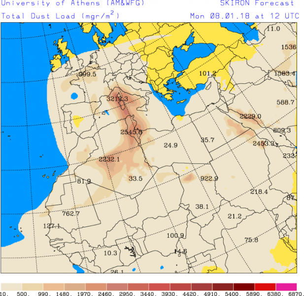 Prema karti koju je objavila stranica severe-weather.eu iz pustinje u Sahari u Europu već danas stiže nanos prašine. Veće količine će proći kroz Italiju, Sardiniju i Francusku, te će u Španjolskoj, Švicarskoj i Velikoj Britaniji.