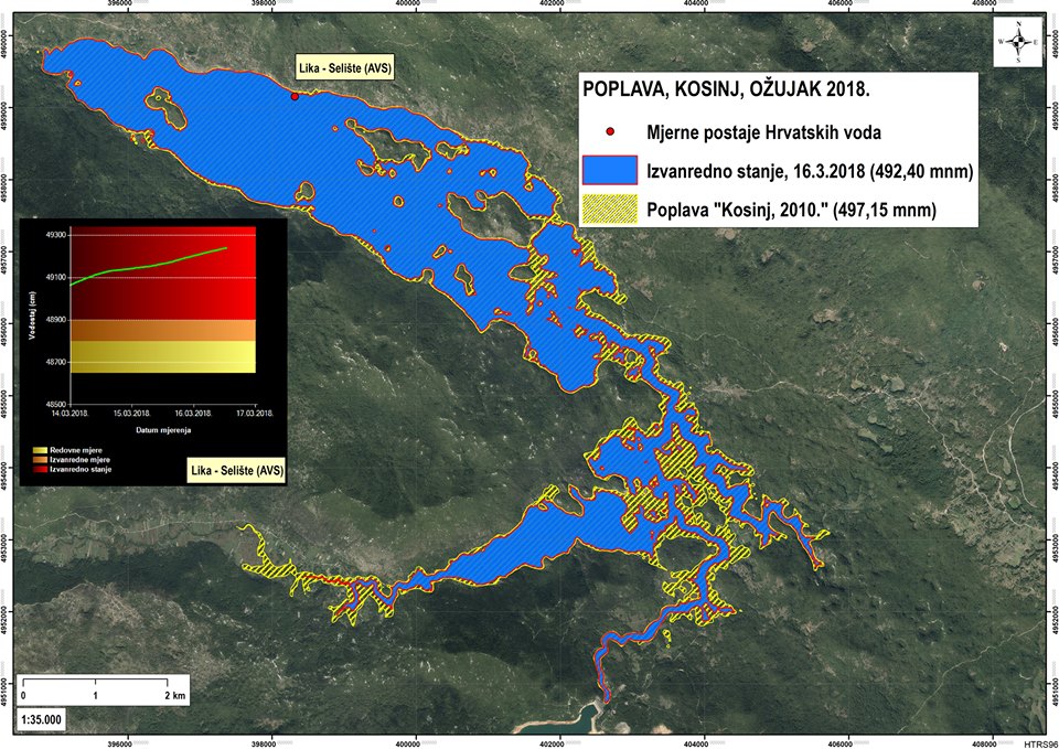 Nikola Šimunić je izradio prikaz poplavljenosti kosinjskog područja danas, nešto prije 13 h, u odnosu na onu veliku poplavu iz 2010. godine. Stanje je prilično zabrinjavajuće, budući da je prisutan trend porasta vodostaja.