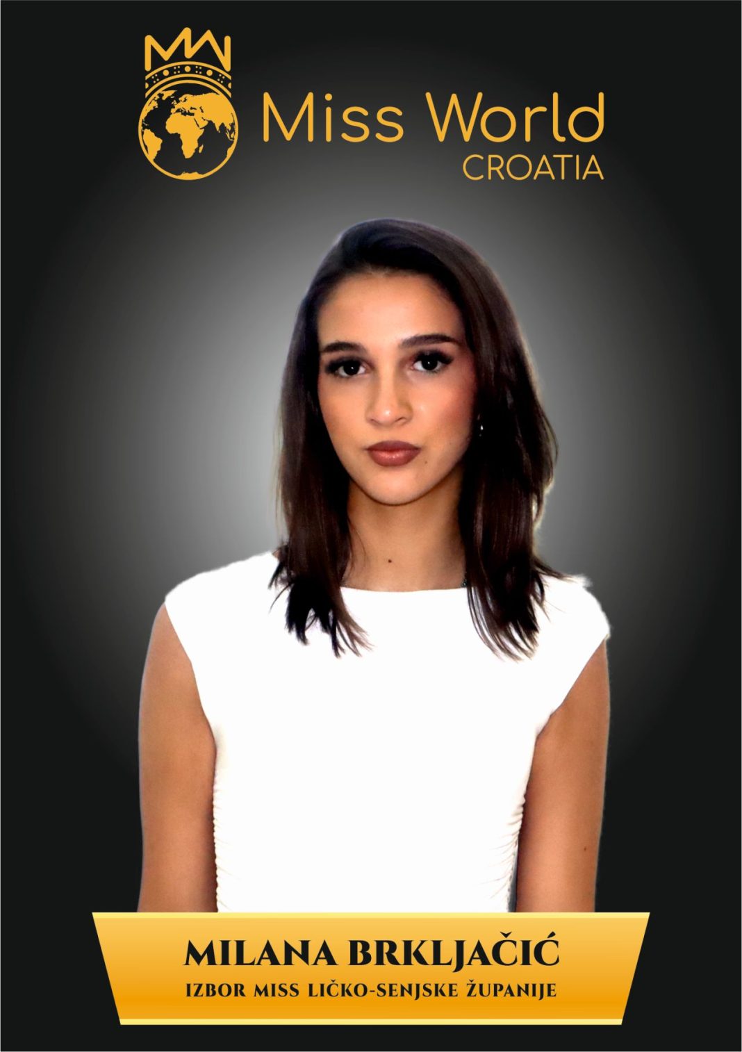 - MILANA BRKLJAČIĆ-Ima 17 godina, dolazi iz Gospića i visoka je 178 centimetara. Učenica je srednje Medicinske škole, no velika joj je želja upisati Pravni fakultet. Milana je energična i samopouzdana osoba koja teži novim izazovima i želi se baviti modelingom. Aktivna je volonterka Crvenog križa jer vjeruje da osmijeh i pozitivna energija mogu uljepšati svaki dan. U slobodno vrijeme svira klarinet u Puhačkom orkestru grada Gospića te aktivno trenira. Govori engleski i njemački jezik.