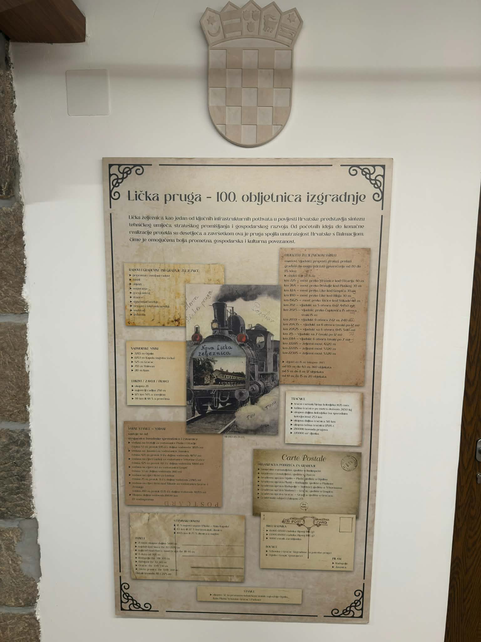 Izložba donosi vrijedan povijesni prikaz izgradnje Ličke pruge, jednog od najznačajnijih infrastrukturnih projekata za razvoj Like i šireg područja, kroz arhivsku građu, fotografije i dokumente koji svjedoče o važnosti ove prometne poveznice.