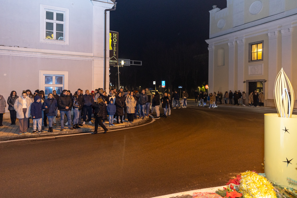 Svetu misu i molitvu uz adventski vijenac postavljen pored kipa vodarice Marte predvodio je o.Marko Maglić, župnik gospićke župe. U propovijedi je naglasio važnost i simboliku svake svijeće na adventskom vijencu od kojih prva simbolizira vjeru i odanost Kristovom nauku.