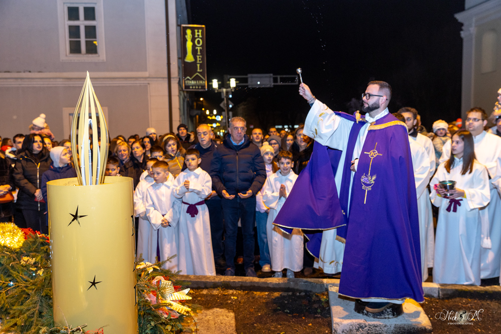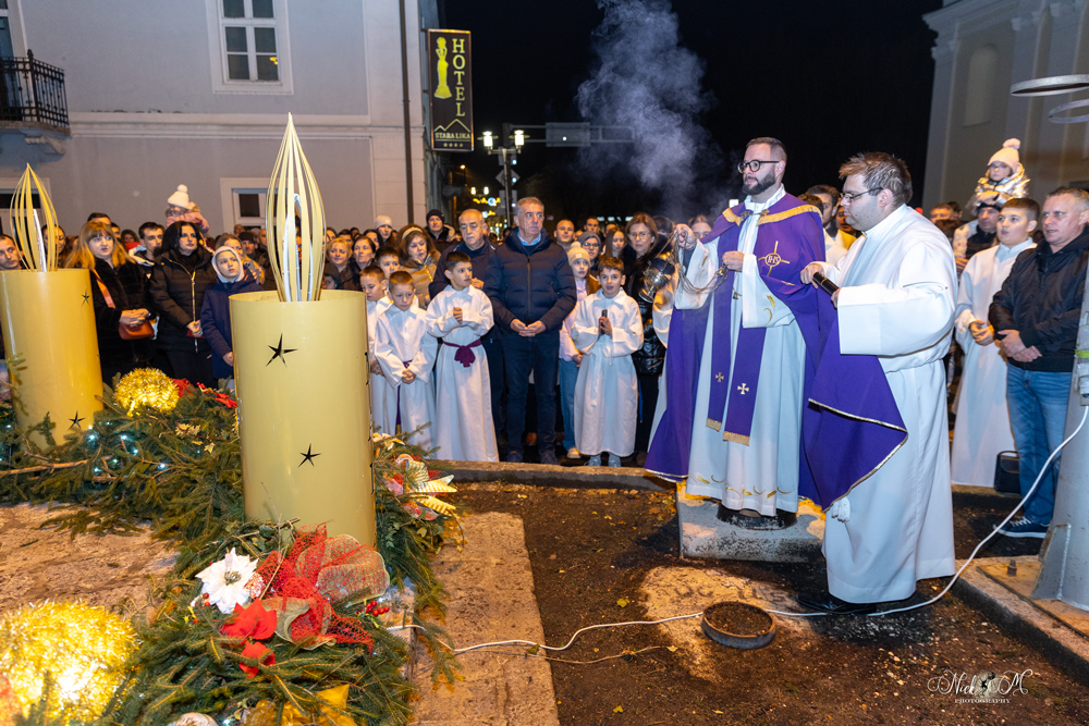 GOSPIĆ – Nedaleko od katedrale Navještenja Blažene Djevice Marije večeras je upaljena prva adventska svijeća. Ovome tradicionalnim činu prethodila je večernja misa na kojoj se okupio veliki broj vjernika.