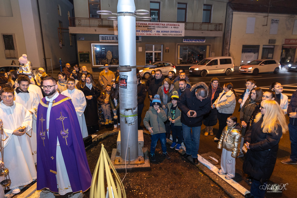 Prvu svijeću upalio je gradonačelnik Grada Gospića Darko Milinović, a među nazočnim vjernicima prisustvovala je i zamjenica ličko-senjskog župana Jasna Orešković Brkljačić.