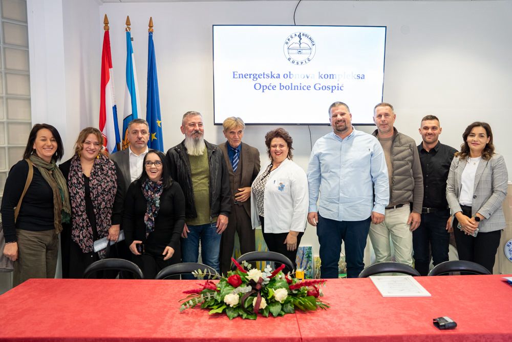 U konferencijskoj dvorani Poliklinike Opće bolnice Gospić danas je održana svečanost potpisivanja ugovora i službenog početka radova na projektu „Energetska obnova kompleksa Opće bolnice Gospić“.