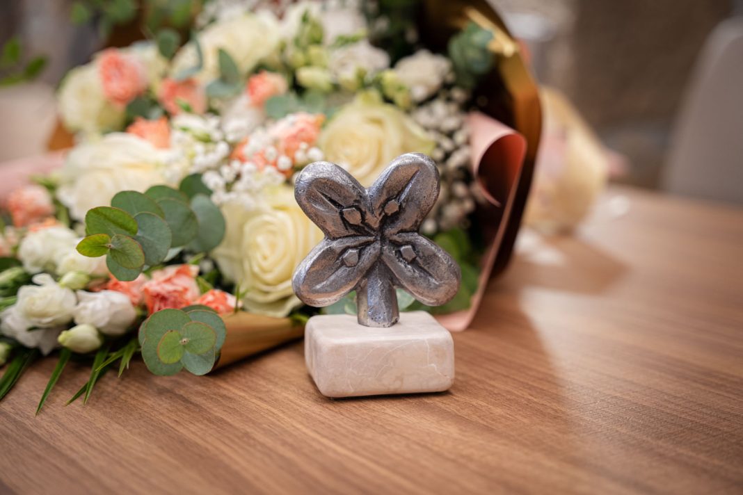 Ovom prilikom župan Petry Antoneli je uručio buket cvijeća te skulpturu velebitske degenije – simbola Ličko-senjske županije.