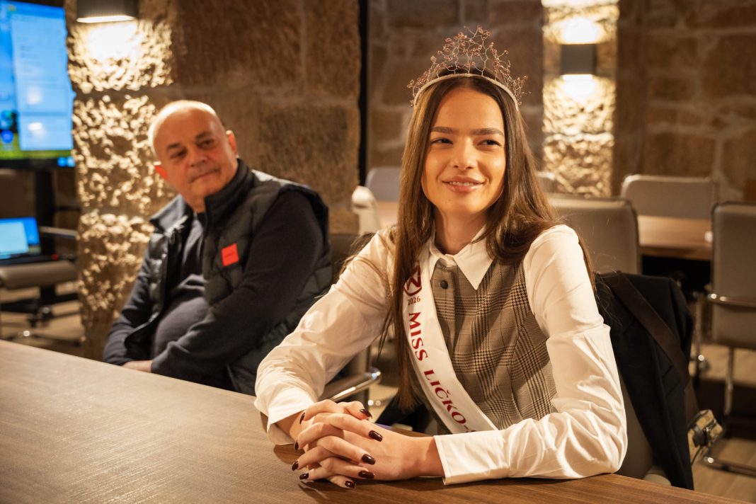 Antonela Antonić iz Plitvičkih jezera, na natjecanju je oduševila žiri i publiku te će uskoro predstavljati Ličko-senjsku županiju na državnom izboru za Miss Hrvatske. Na prijem je stigla u pratnji ponosnog oca te vlasnice Direkcije Miss Hrvatske za Miss Svijeta, Ive Loparić Kontek.
